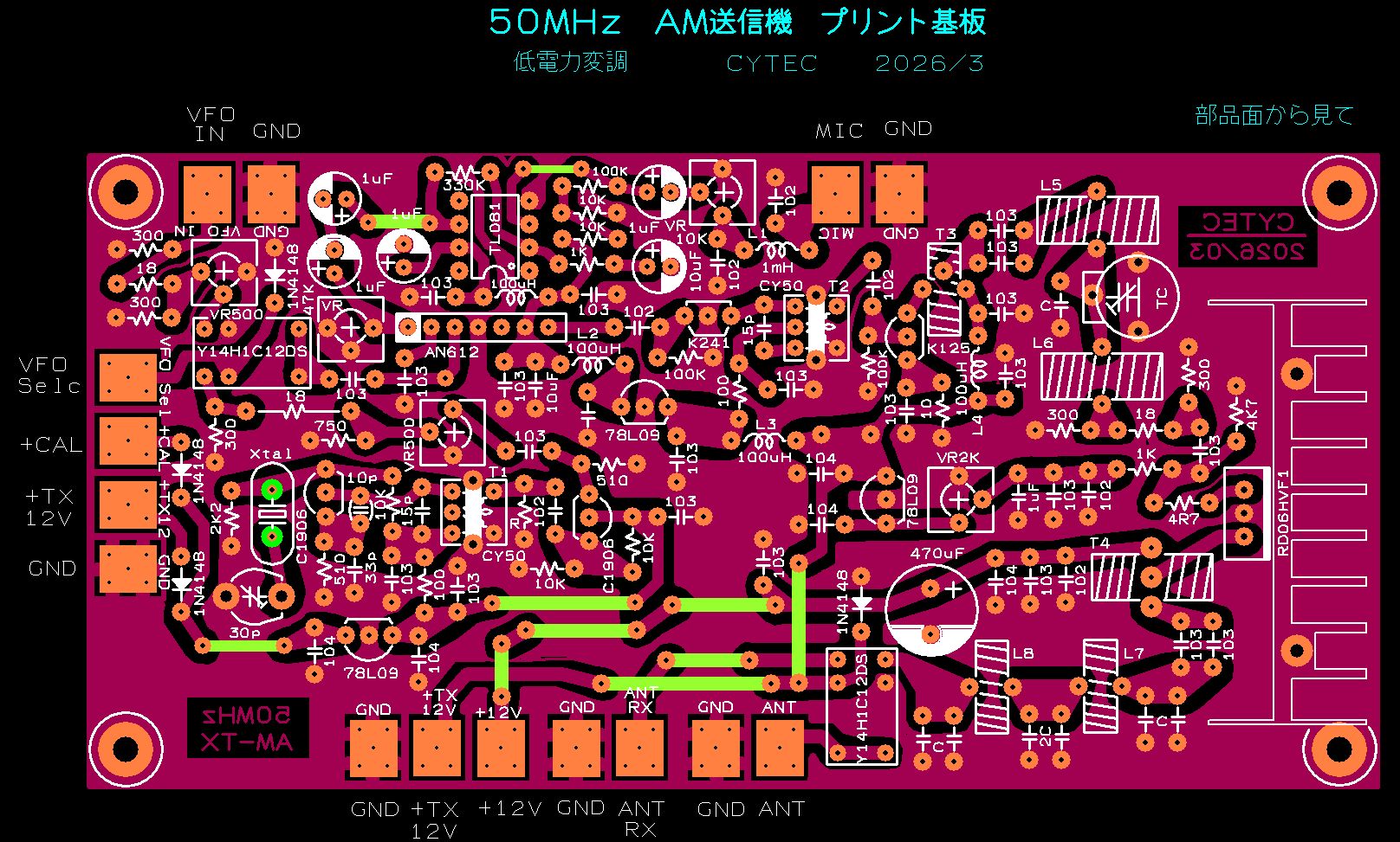 50MHzAM送信機のプリント基板ア-トワ-ク