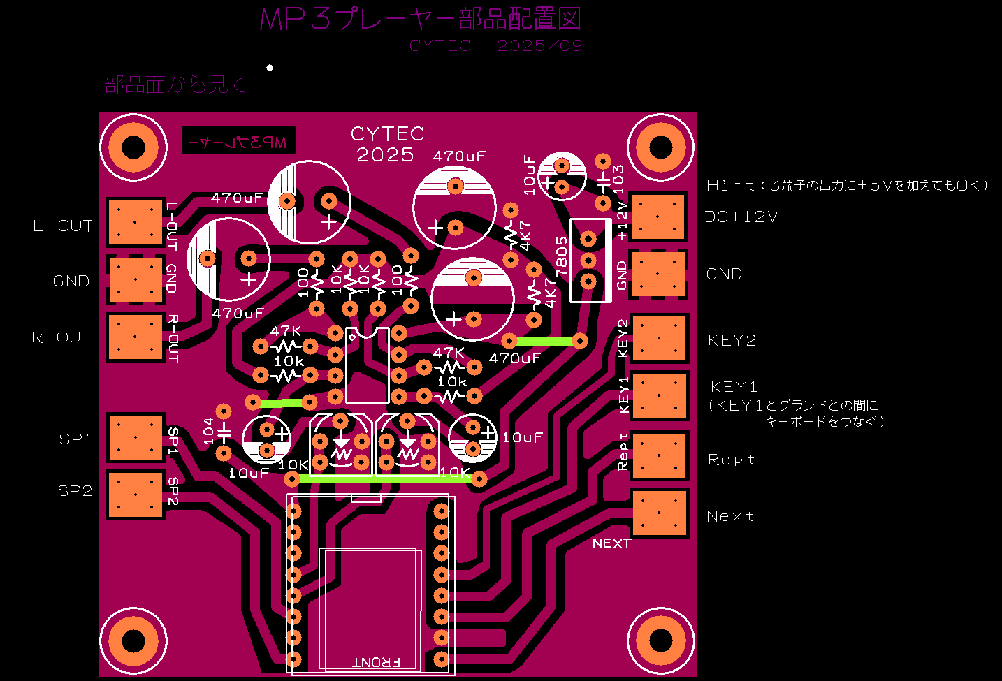 2025/10−05 JE1AHW/内田 アマゾンで購入した「MP3プレ−ヤ−」 CYTEC版部品配置図・・・ (1)