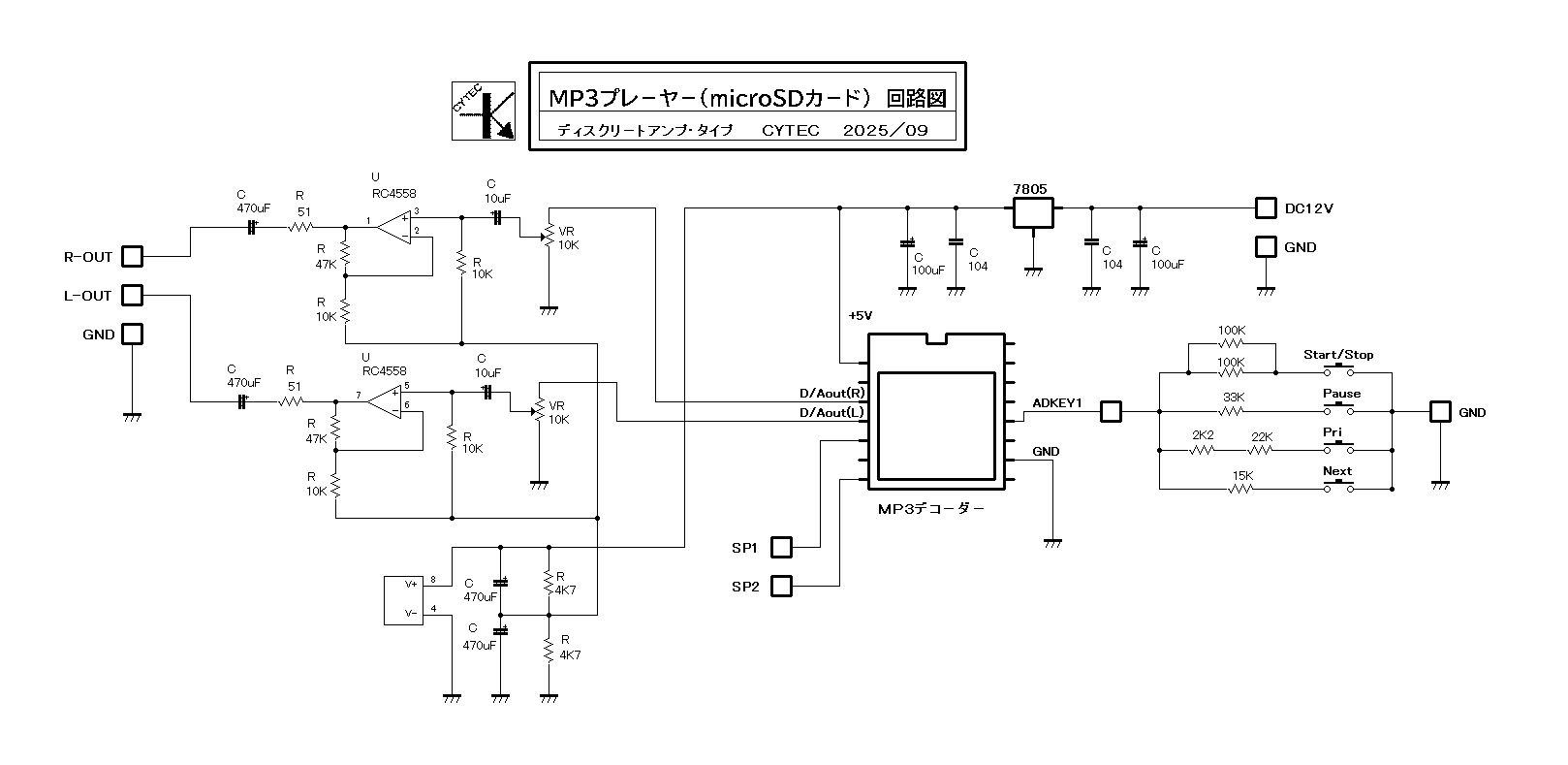 2025/10−05 JE1AHW/内田 アマゾンで購入した「MP3プレ−ヤ−」 CYTEC版プレ−ヤ−回路図・・・ (1)