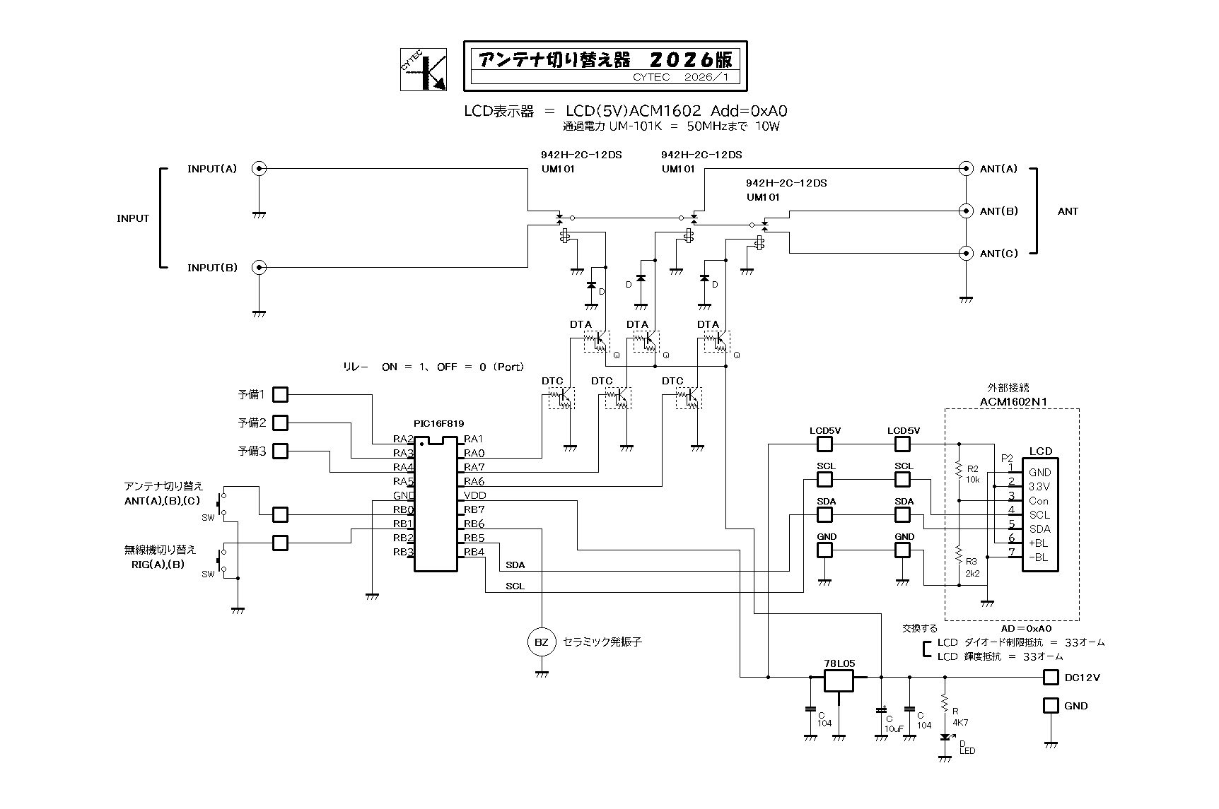 2026/02−05 JE1AHW/内田 ANT + RIG 切り替え器 3ANT↔2RIG 回路図 ・・・ (1)
