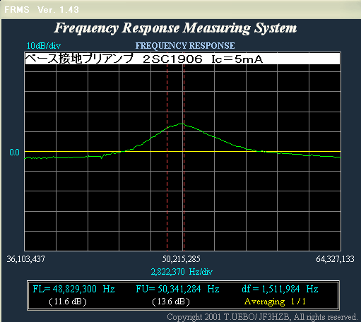 2009−01/11 JE1AHW/内田 (2)50MHz帯 トランジスタ−・プリアンプ ゲイン/帯域特性 2SC1815 ・・・(1)、(2)