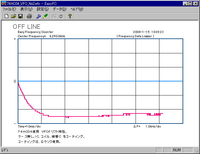 VFOなどの周波数ドリフト特性を自動的に測定・記録する。 「EasyFC」 Ver1.2